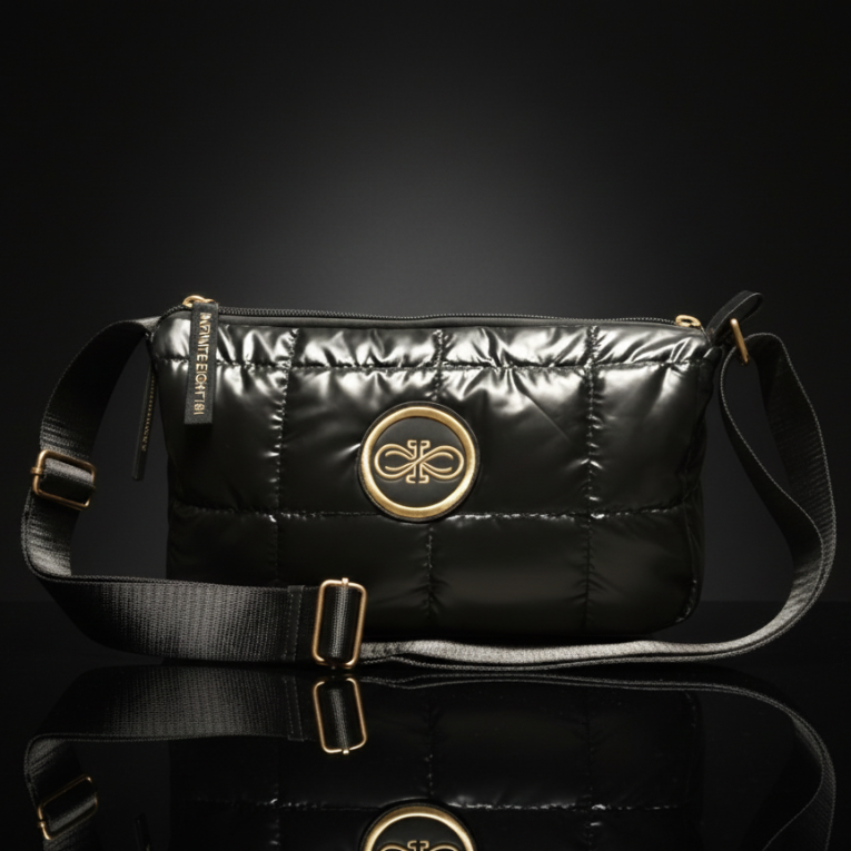 La Signature Brodée : Un Savoir-Faire Moderne Pour cette création, la Maison INFINITE EIGHT 181 a choisi l'audace d'un logo brodé aux reflets dorées , apportant un contraste subtil et contemporain à la profondeur du noir. Comme chaque pièce de notre collection, il a été soumis à nos 181 points de contrôle, garantissant une résistance optimale de sa sangle et une fluidité parfaite de ses fermetures éclair.