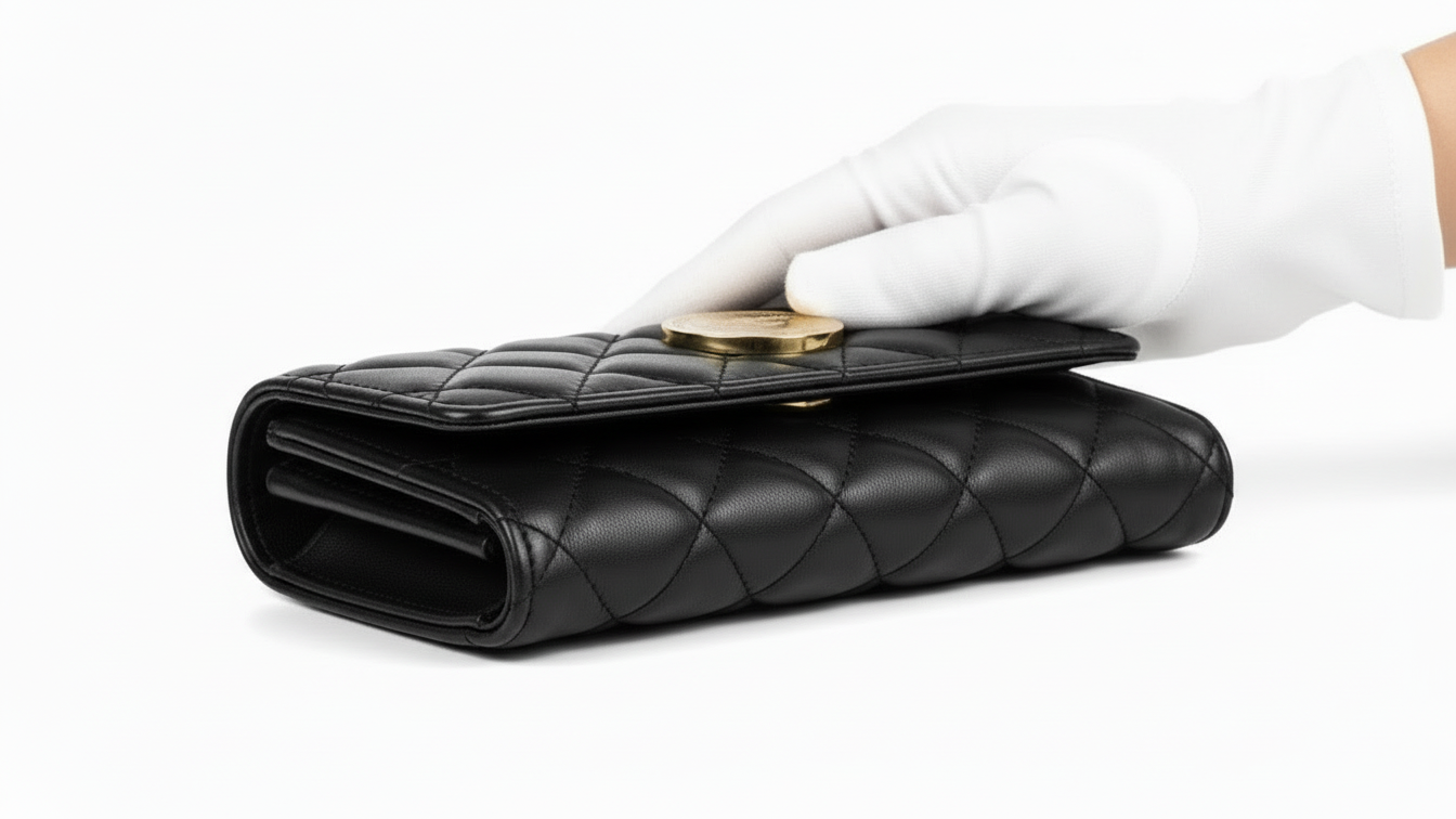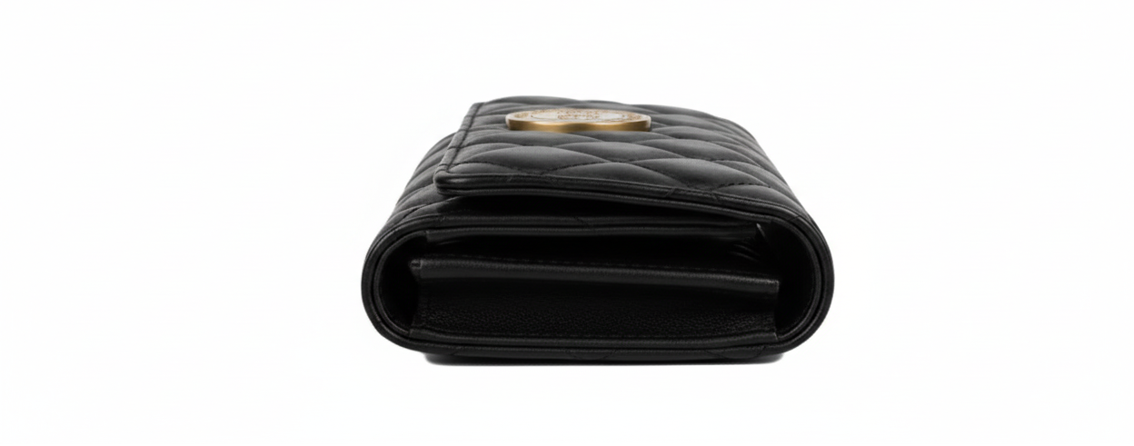 Finition Haute Couture : Un matelassage en losanges précis, souligné par l'éclat de notre sceau doré emblématique.